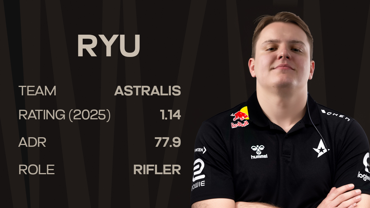 ryu enters 2026 as one of the most reliable and battle-tested riflers to emerge from the European tier-two scene. At 21 years old, he has already combined long-term consistency with steady progression, earning a move to one of Counter-Strike’s most demanding organizations — Astralis.