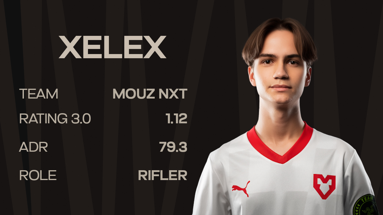 What makes xelex stand out isn’t just his age, but how quickly he adapted to structured team play. Since joining MOUZ NXT in late 2024, he has become a consistent rifling presence, combining discipline with growing confidence in mid-round situations. In a scene filled with raw aimers, xelex already shows signs of a player being shaped for long-term tier-one readiness rather than short-term results.
