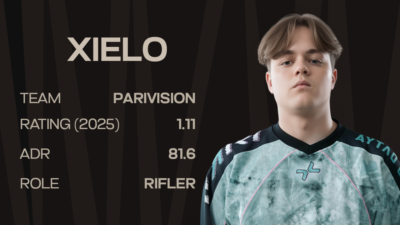 His rise accelerated throughout 2025 with PARIVISION, where xiELO became a focal point of the team’s offense. His style is fast, instinctive, and pressure-driven — a player who thrives when the pace increases. That approach paid off domestically, with multiple B-tier titles and deep runs that ultimately earned him a spot at the StarLadder Budapest Major 2025, his first appearance at Counter-Strike’s biggest stage.