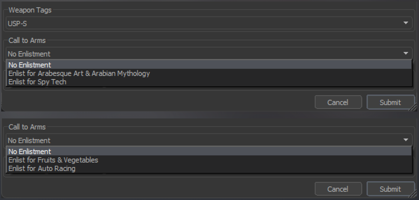 Valve traditionally employ a “targeted themes” model, guiding the community within specific stylistic boundaries. This time, the developers focused on two artistic directions for weapon finishes and two conceptual themes for stickers.