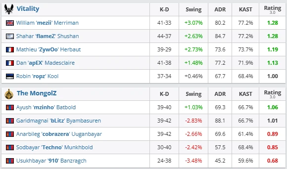 The MongolZ looked confident on their pick. mzinho and bLitz found consistent openings, and Vitality struggled to maintain defensive cohesion in mid-round situations. Despite solid individual performances from flameZ and mezii, Mirage slipped away 10–13.
