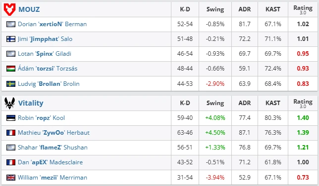 On their own pick, MOUZ looked revitalized. Jimpphat locked down the B site with composure, and xertioN provided explosive entries. Vitality fought back behind ZywOo’s heroics, but MOUZ’s cohesion prevailed.