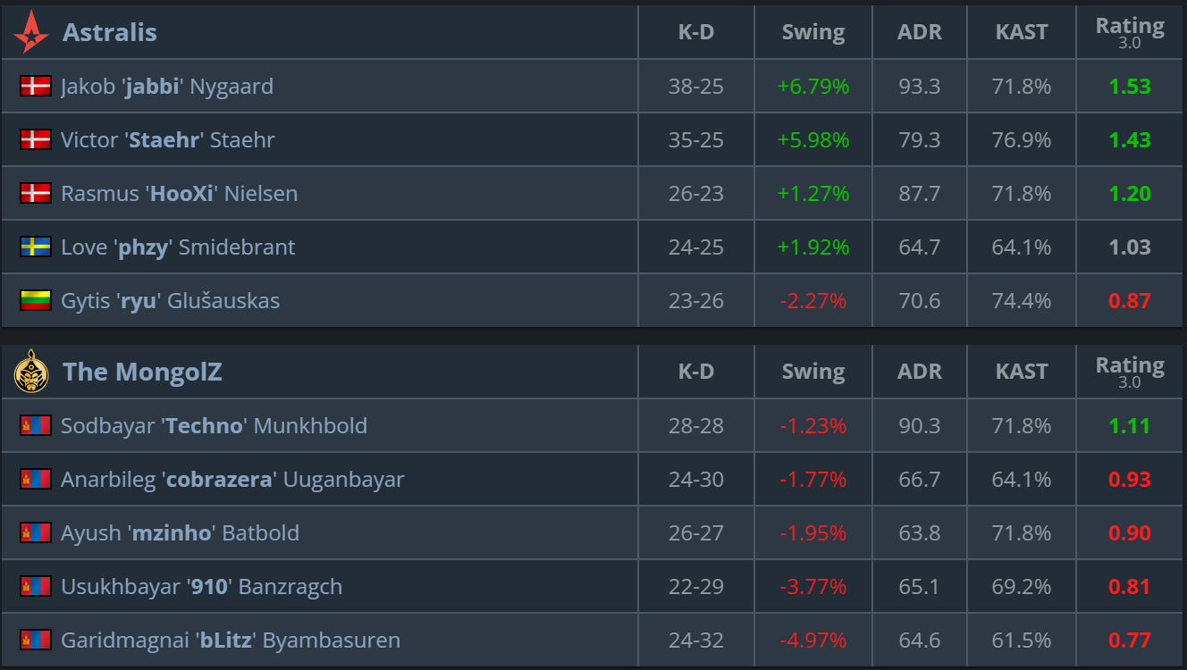 Les principales différences étaient la structure de jeu d’Astralis, une conversion plus régulière des moments critiques, et une forte correspondance individuelle à partir de jabbi. En conséquence, Astralis accède aux playoffs, tandis que The MongolZ est contraint de poursuivre sa lutte à travers le groupe 2:1.
