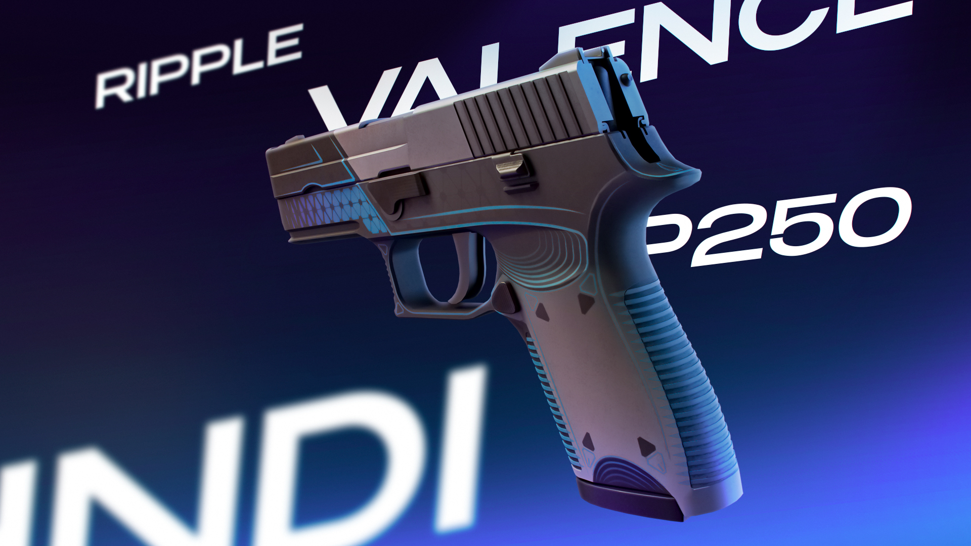 P250 | Валентность имеет футуристичный дизайн с оранжевыми узорами, которые создают современную эстетику. Геометрический рисунок скина, подчеркнутый ярким оттенком электрического синего, придает оружию стильный и интересный вид.