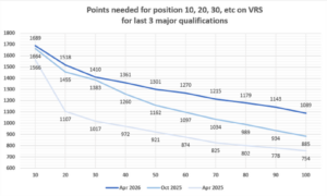 Новые подсчёты по трём последним major-циклам очень хорошо показывают, насколько агрессивно изменилась цена позиций в VRS. Ещё год назад 1107 очков хватало, чтобы быть в топ-20 мира. Теперь же 1100 очков — это уровень, с которым можно едва втиснуться в топ-100.