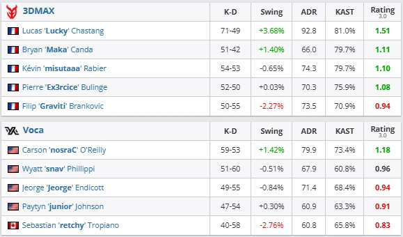 Maçın tüm aşamalarındaki tutarlılığı ve etkisi, 3DMAX’ın toparlanmasını ve galibiyeti garantilemesini sağladı. Voca tarafında, nosraC (1.18 puan) sağlam bir performans sergiledi, ancak seriyi kapatmak için gerekli desteği yoktu.